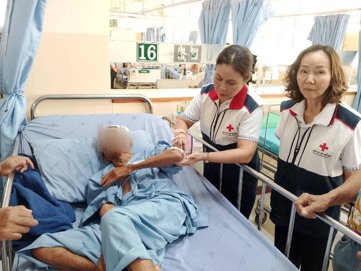 กิ่งกาชาดลำปลายมาศลงพื้นที่ช่วยเหลือผู้บาดเจ็บจากเหตุหลานทำร้ายยาย